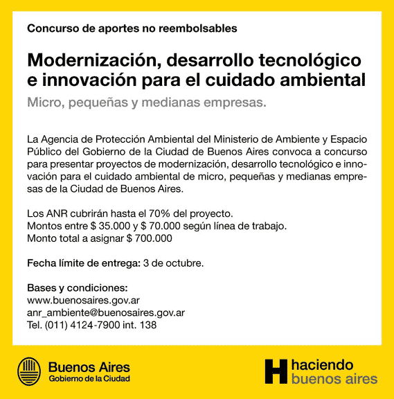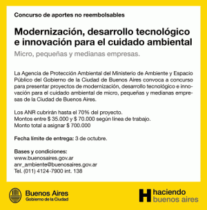 La Dirección General de Planeamiento de la Agencia de Protección Ambiental del Gobierno de la Ciudad de Buenos Aires, ha puesto en funcionamiento un concurso para financiar parcialmente proyectos de Modernización Tecnológica.