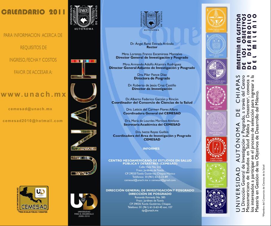 La Universidad Autónoma de Chiapas (UNACH), en un acto de permanente vínculo y soporte a las políticas sociales del gobierno del Estado, ha elaborado un programa de maestría en Gestión de los Objetivos del Milenio. En términos generales en el único en su género en Latinoamérica y pretende en el futuro su internacionalización.