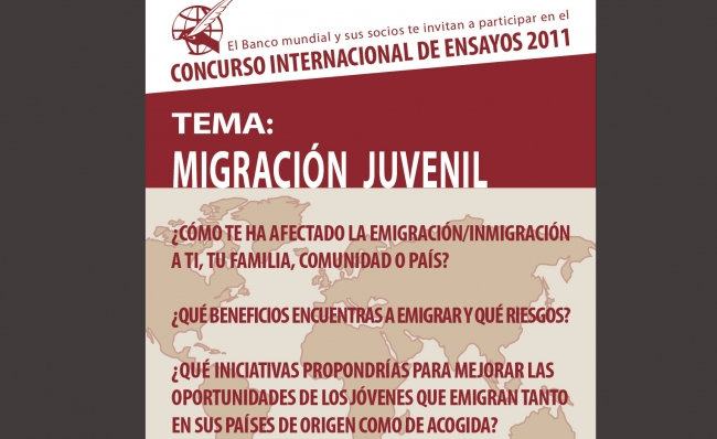 A través del Concurso Internacional de Ensayos 2011, el Banco Mundial quisiera saber tu punto de vista sobre las oportunidades, retos e implicaciones de la migración para los jóvenes.