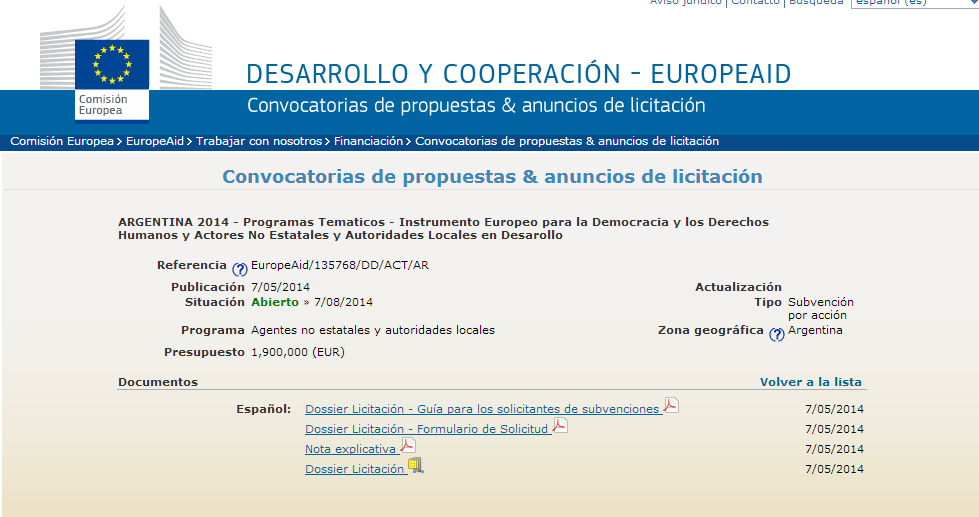 | ARGENTINA 2014 – Programas Tematicos – Instrumento Europeo para la Democracia y los Derechos Humanos y Actores No Estatales y Autoridades Locales en Desarollo | ||||||||||||||||||||||||