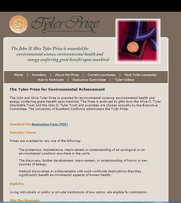 Para ser admitidos, los solicitantes deberán reunir los siguientes requisitos: el candidato debe ser un individuo o grupo de individuos. Para el Premio Creatividad no será elegible una universidad, organización u organismo de gobierno para ser nominado. Las organizaciones pueden nominarse a sí mismas para uno de los cuatro premios especializados. Las publicaciones científicas de investigación, libros y patentes deberán ser presentadas para su consideración. Las obras no publicadas y las patentes no registradas no son elegibles para el Premio.