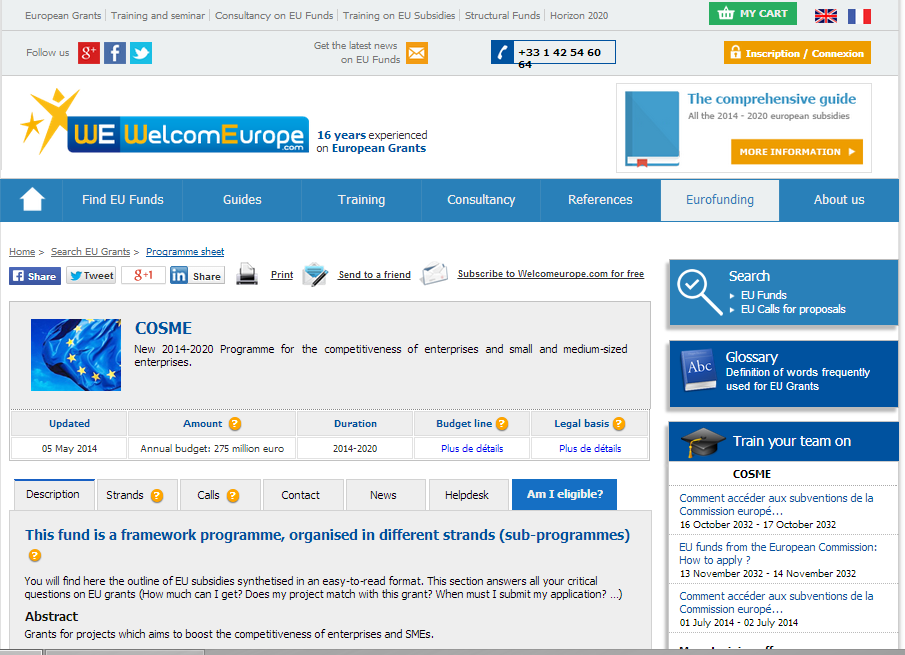 You will find here the outline of EU subsidies synthetised in an easy-to-read format. This section answers all your critical questions on EU grants (How much can I get? Does my project match with this grant? When must I submit my application? …)