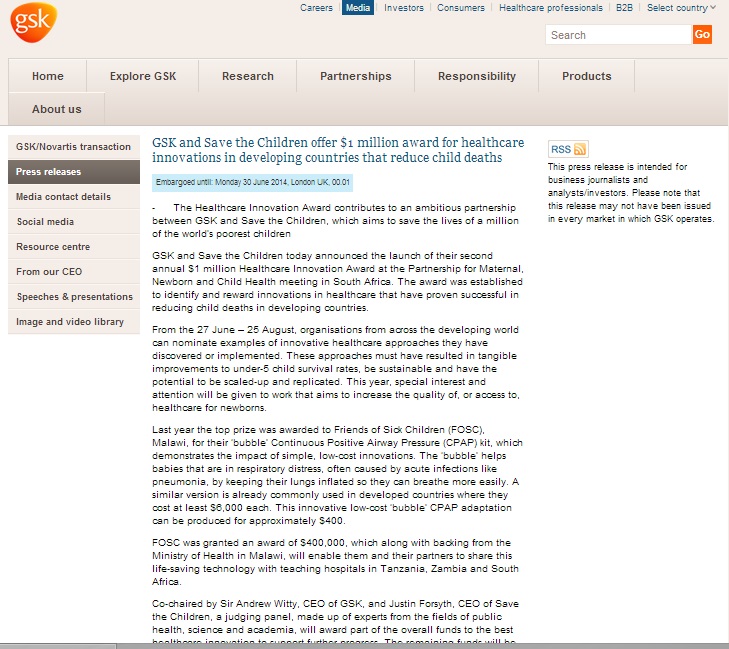 The second annual Healthcare Innovation Award is open for nominations of organizations that are practicing innovative approaches for reducing under-5 child mortality. This is a global partnership program of GSK and Save the Children. The organizations that will be judged as practicing most innovative and effective ways to improve the newborn survival will be provided from US$10,000 to US$400,000.