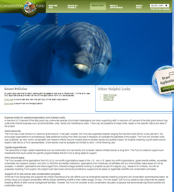 The Fund accepts online applications from 501(c)(3) non-profit organizations based in the U.S., non-U.S. based non-profit organizations, governmental entities, accredited universities and research centers, and AZA- or AMMPA-accredited institutions. Applications from individuals not affiliated with any of the entities listed above will not be accepted. In addition, applications are discouraged from university/college students working on projects as part of a degree (e.g., research for a thesis). As with all proposals receiving Fund support, the project must have broad community/constituency support and be based on legitimate scientific and conservation principals.