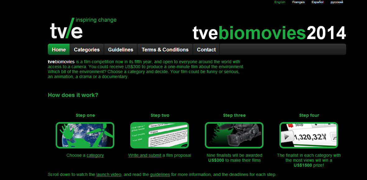 tvebiomovies is a film competition now in its fifth year, and open to everyone around the world with access to a camera. You could receive US$300 to produce a one-minute film about the environment. Which bit of the environment? Choose a category and decide. Your film could be funny or serious, an animation, a drama or a documentary .http://en.tvebiomovies.org/
