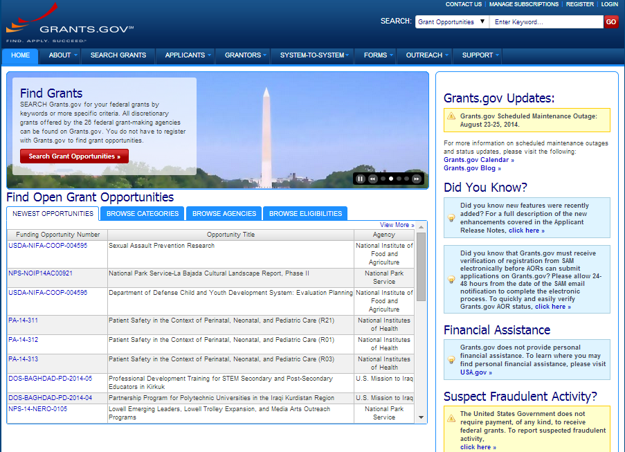 In order to apply for a grant, you and/or your organization must complete the Grants.gov registration process. Registration can take between three-five business days or as long as two weeks if all steps are not completed in a timely manner. Register for grant opportunities now.