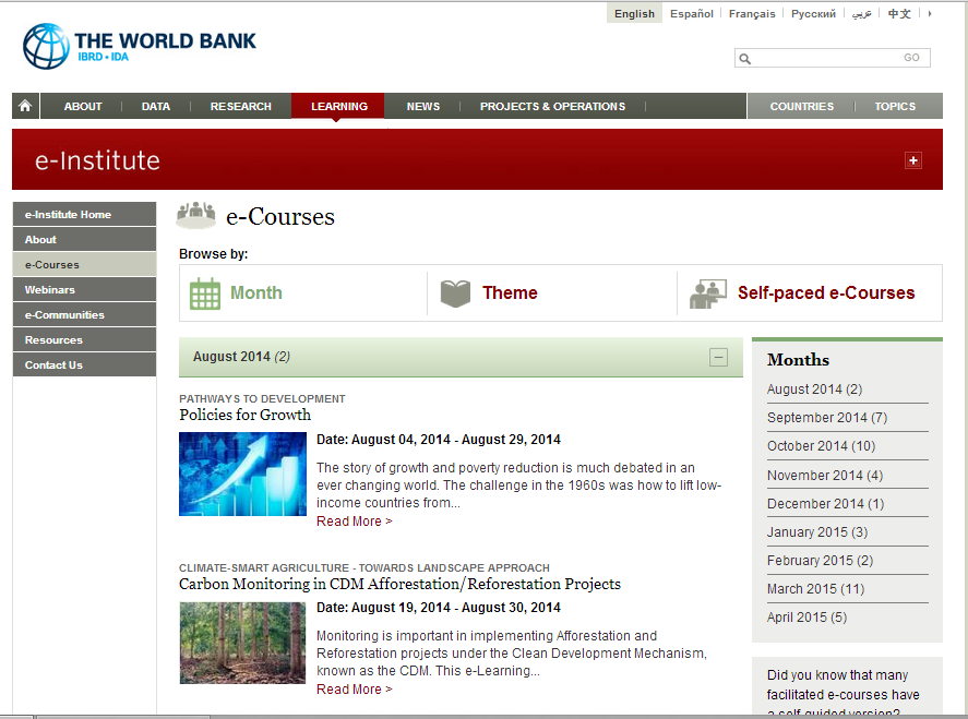 The e-Institute. This unique global portal is designed to support self-motivated learners who want to get up to speed on the latest development trends, enhance their skills, and share knowledge through on-line learning communities.