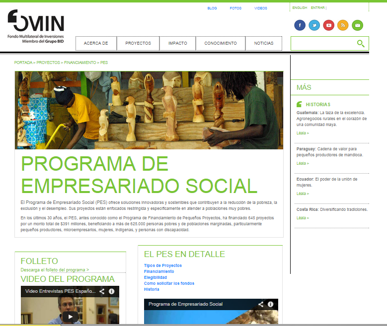 En septiembre de 1998, el Banco sustituyó al Programa de Financiamiento de Pequeños Proyectos con el Programa de Empresariado Social (PES) con el fin de hacer el programa más eficaz y adaptarse a un nuevo contexto en América Latina y el Caribe.
