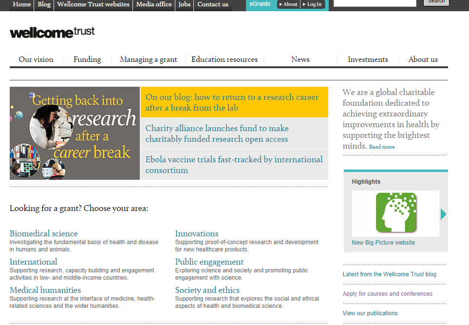 We support the brightest minds in biomedical research and the medical humanities. Our breadth of support includes public engagement, education and the application of research to improve health. Find out more about our vision and what we do.