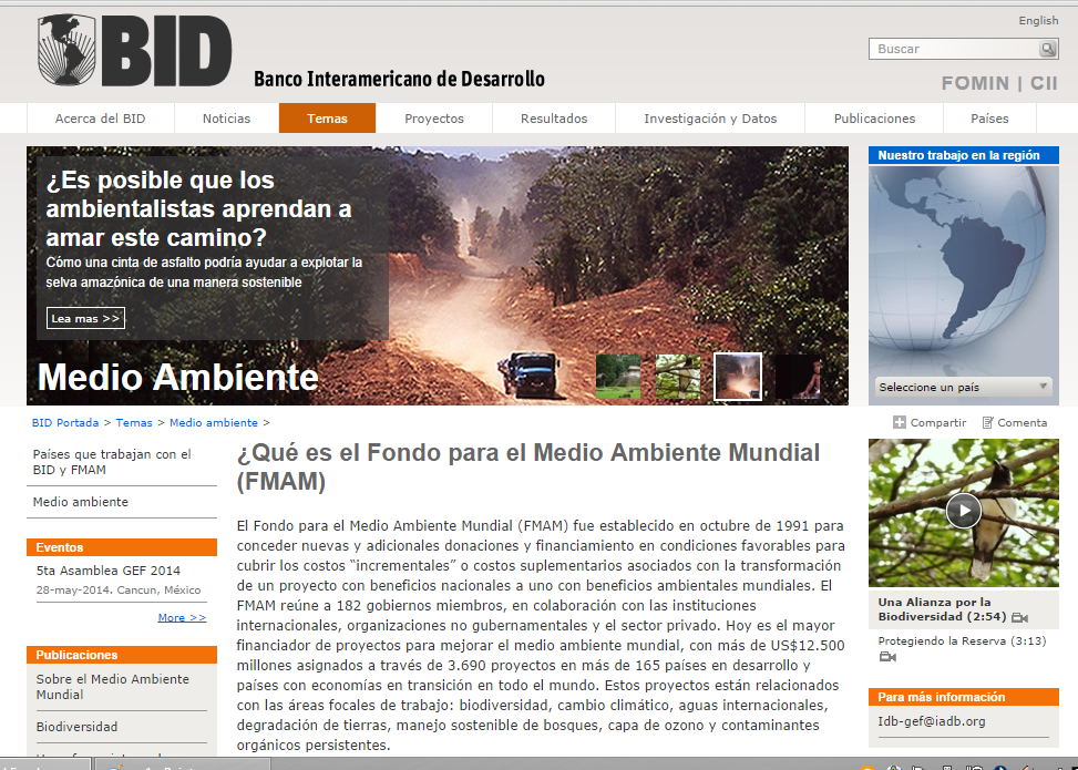 El Fondo para el Medio Ambiente Mundial (FMAM) fue establecido en octubre de 1991 para conceder nuevas y adicionales donaciones y financiamiento en condiciones favorables para cubrir los costos “incrementales” o costos suplementarios asociados con la transformación de un proyecto con beneficios nacionales a uno con beneficios ambientales mundiales. El FMAM reúne a 182 gobiernos miembros, en colaboración con las instituciones internacionales, organizaciones no gubernamentales y el sector privado. Hoy es el mayor financiador de proyectos para mejorar el medio ambiente mundial, con más de US$12.500 millones asignados a través de 3.690 proyectos en más de 165 países en desarrollo y países con economías en transición en todo el mundo. Estos proyectos están relacionados con las áreas focales de trabajo: biodiversidad, cambio climático, aguas internacionales, degradación de tierras, manejo sostenible de bosques, capa de ozono y contaminantes orgánicos persistentes.