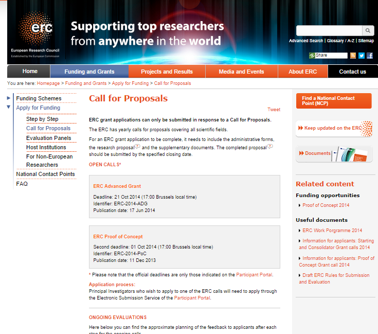 ERC Proof of ConceptSecond deadline: 01 Oct 2014 (17:00 Brussels local time)