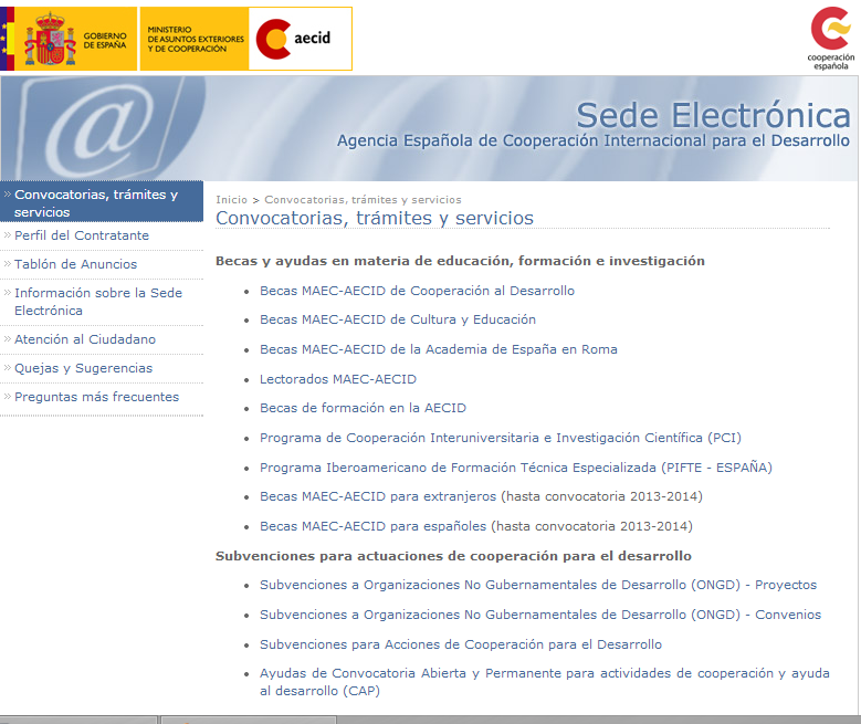 - Becas MAEC-AECID para españoles (hasta convocatoria 2013-2014)
