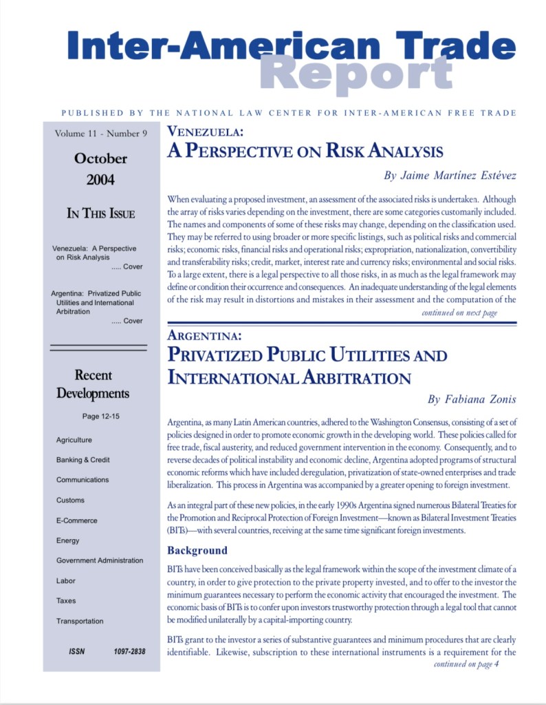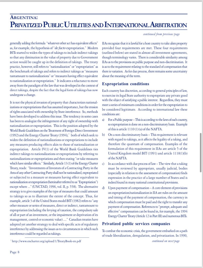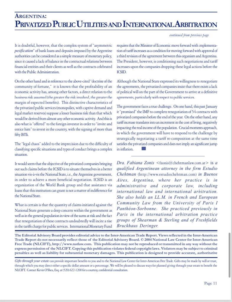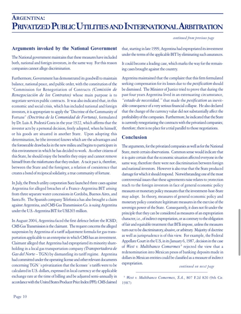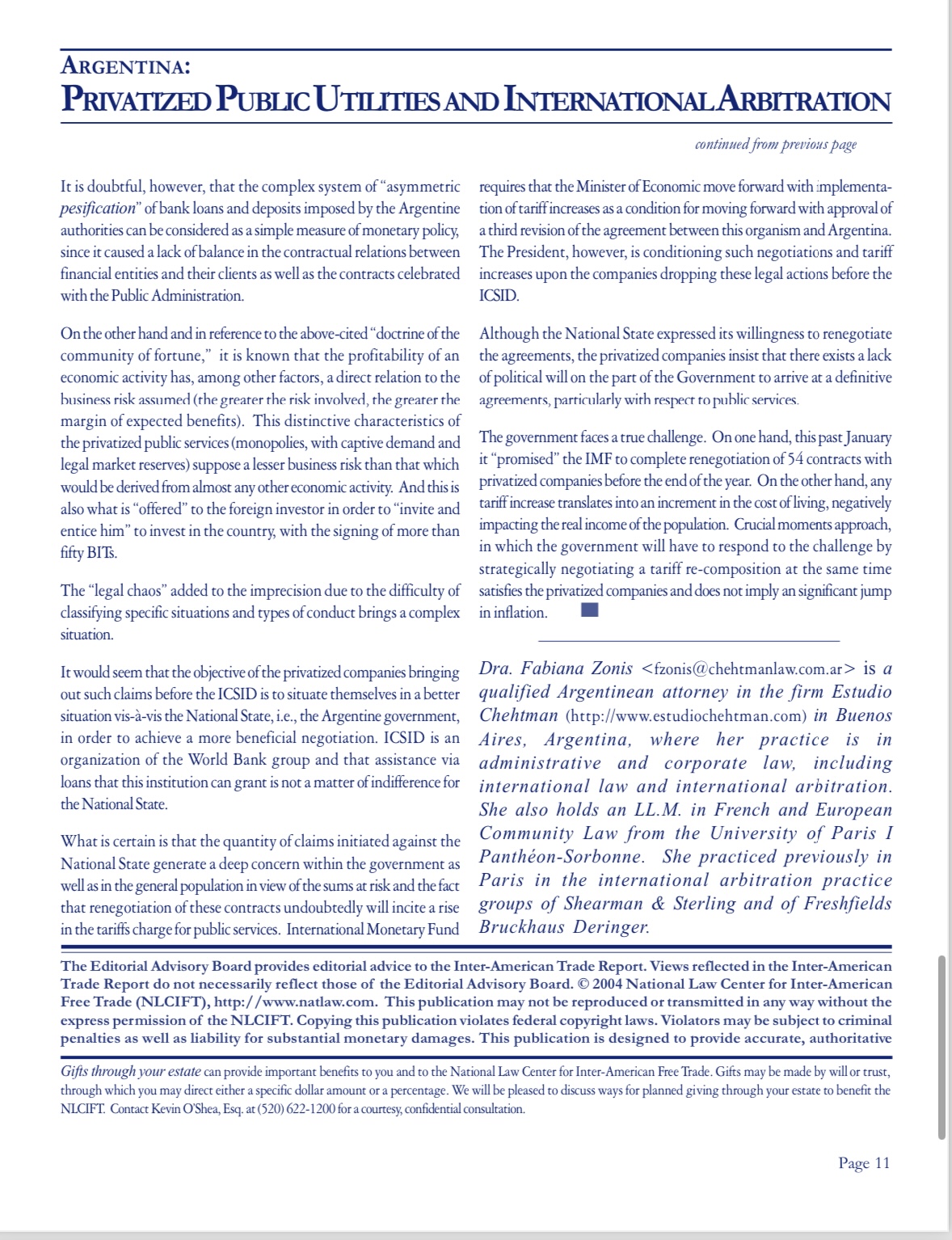 agosto 20, 2024 Fabiana ARGENTINA:PRIVATIZED PUBLIC UTILITIES ANDINTERNATIONAL ARBITRATIONBy Fabiana Zonis Screenshot Screenshot Screenshot Screenshot Screenshot Screenshot Screenshot If you enjoyed this article, please consider sharing it! Haz clic para compartir en Facebook (Se abre en una ventana nueva) Facebook Haz clic para compartir en X (Se abre en una ventana nueva) X Más Haz clic para compartir en LinkedIn (Se abre en una ventana nueva) LinkedIn Haz clic para compartir en Reddit (Se abre en una ventana nueva) Reddit Haz clic para compartir en Pinterest (Se abre en una ventana nueva) Pinterest Me gusta Cargando... Relacionado